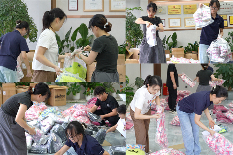 整理、打包、裝箱,這些暖冬愛心物資經過冠亞恒溫工作人員的細心整理和打包后,迅速裝箱并郵寄,飛速駛向寧夏西吉。
